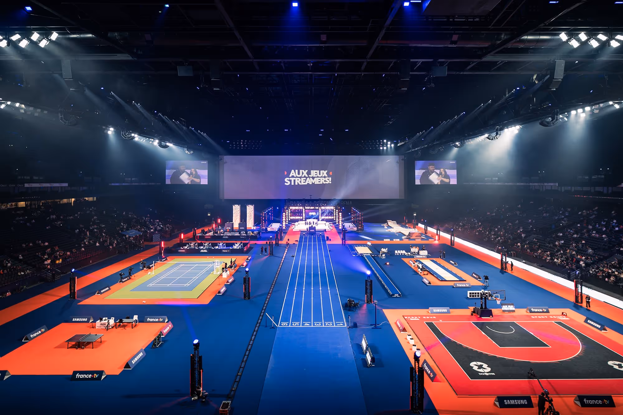 Aux Jeux Streamers was a large-scale gaming and streaming showcase held at Paris La Défense Arena, organized by Webedia in partnership with France TV. Bringing together 32 top streamers and creators (Domingo, Just Riadh, CyrilMP4, and more), the event featured competitive Olympic-style challenges, live performances, and a packed audience, broadcast simultaneously on Twitch and national television.