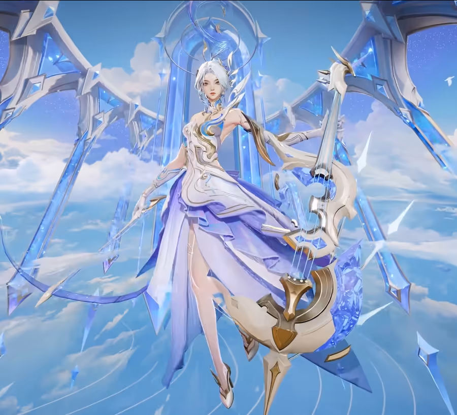 The story begins before the concept of time itself, when the gods gifted three movements to the universe: one for life, one for prosperity, and one foretelling the end. Garo is the musician who performs these symphonies, shaping the destiny of the world through her strings. This mythic skin captures her sacred role, blending tragedy, grandeur, and renewal.